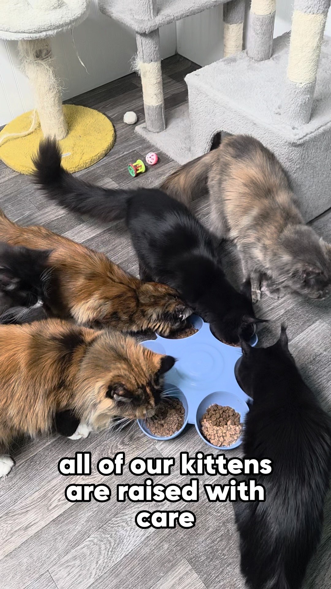 We are a small boutique home based cattery producing healthy and beautiful Maine Coons from European lines. Our breeding cats were imported from Russia. They are raised in our home with kids, dogs and other cats. We socialize them to make sure they can adjust quickly in their new homes.